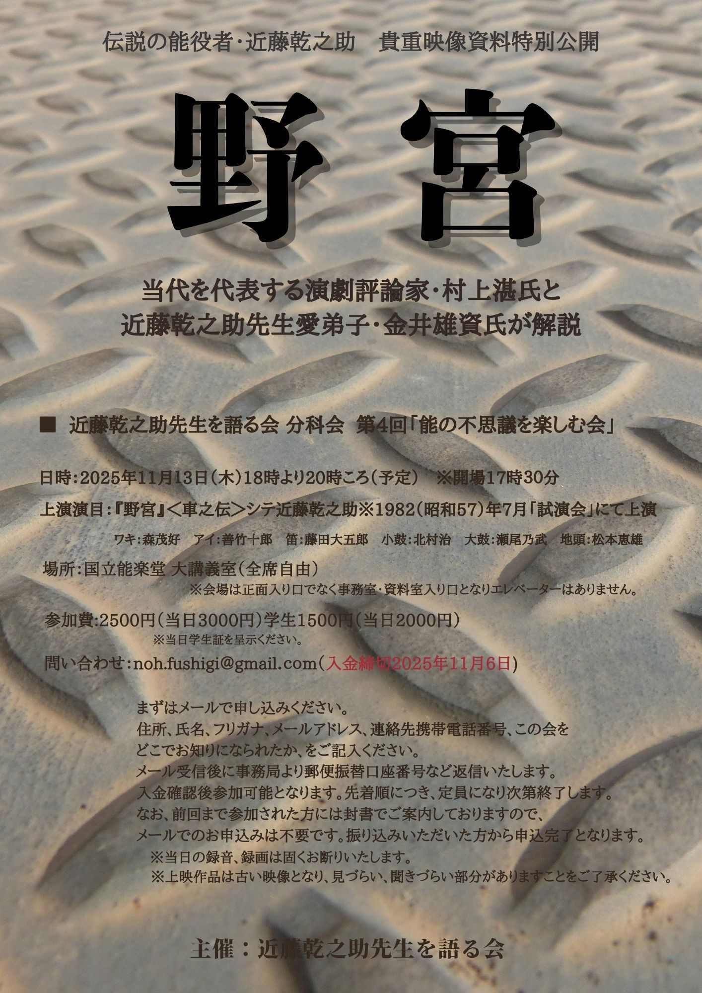 タイトルは、近藤乾之助先生の個人演能会である「近藤乾之助