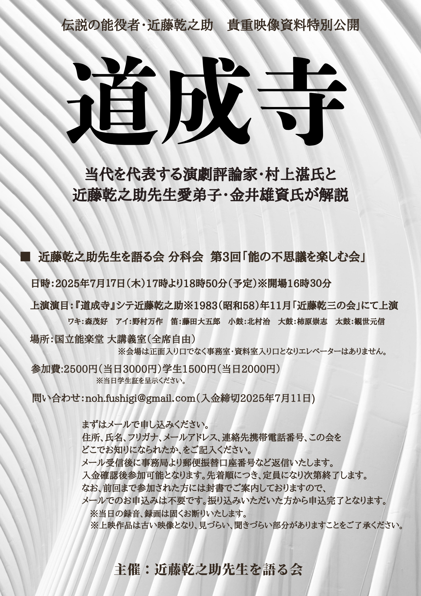 タイトルは、近藤乾之助先生の個人演能会である「近藤乾之助